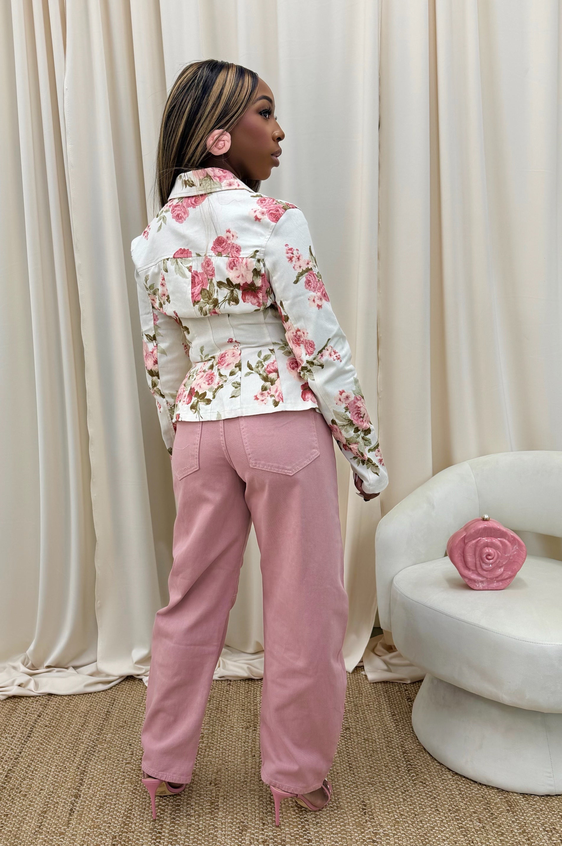 Your new go to Spring Denim. Effortlessly chic and easy to style, these dusty rose jeans feature a flattering high waist and relaxed barrel leg for a sleek, elongated silhouette. Crafted from soft, structured denim with functional pockets, they’re perfect for dressing up or down.