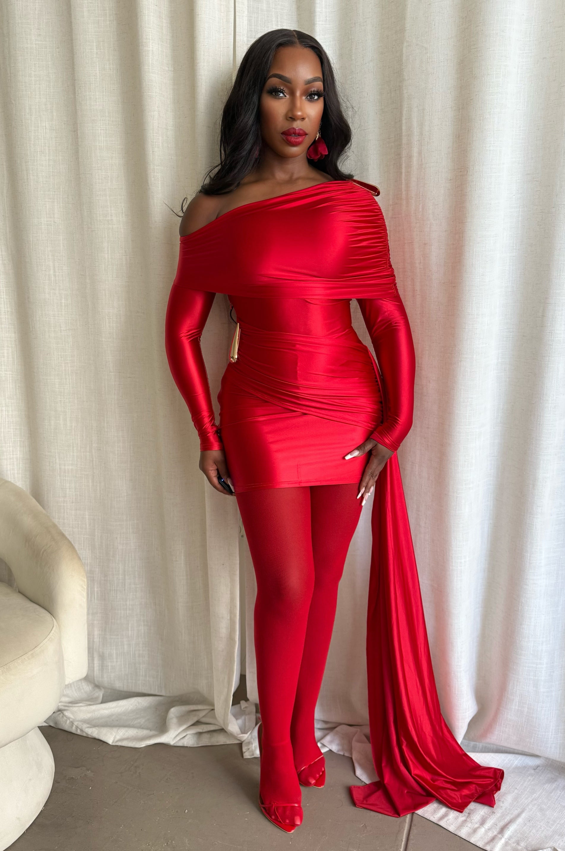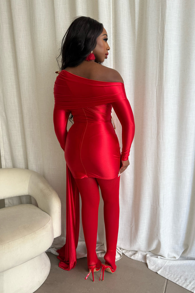 Draped in Luxury Mini Dress- Red