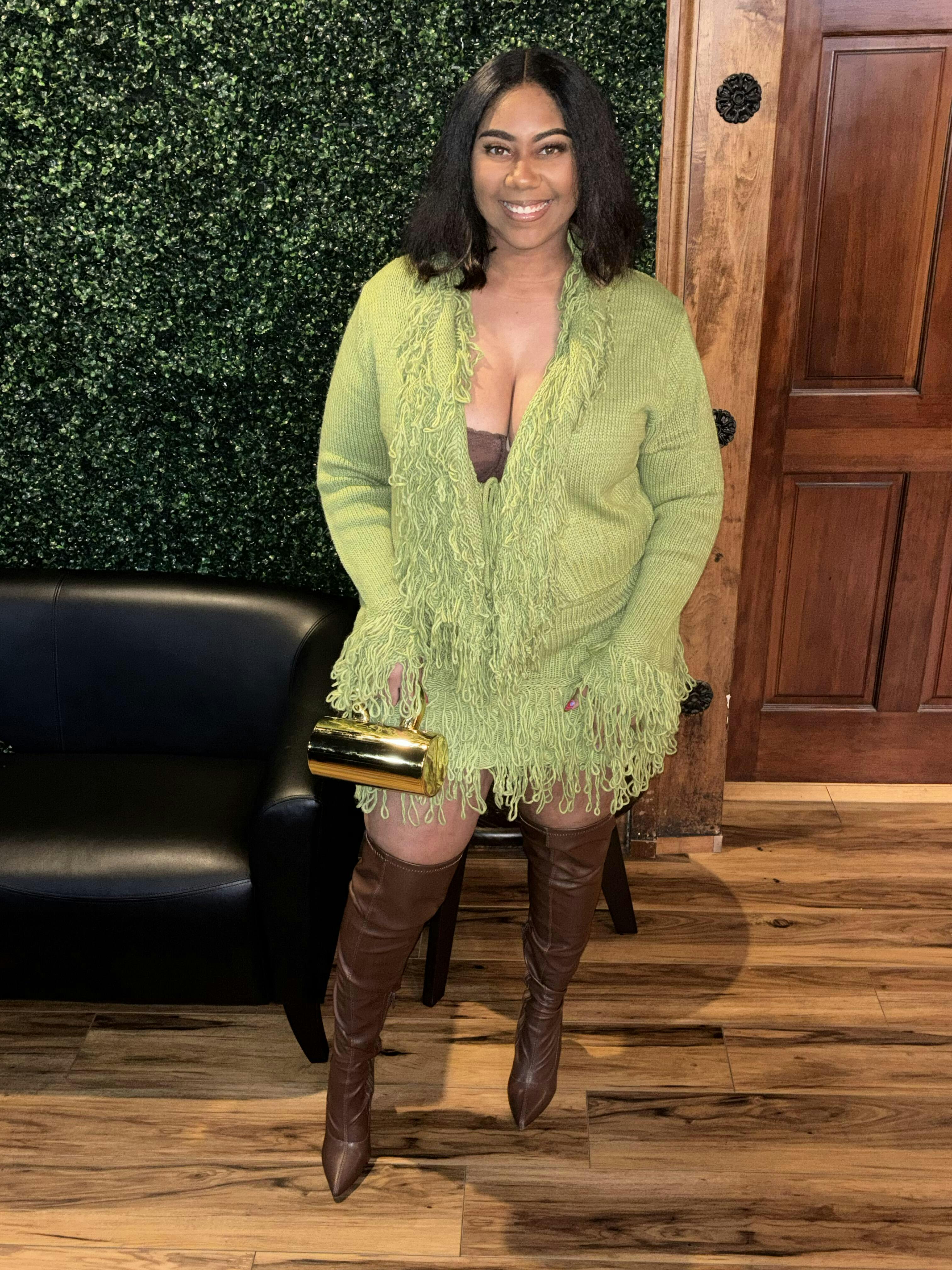 Stand out in our Fringe Factor Skirt Set, featuring a deep V-neck sweater top and matching mini skirt. The bold fringe trim adds playful movement, while the fitted silhouette keeps it chic and flattering. Perfect with boots or heels for an effortlessly stylish look.