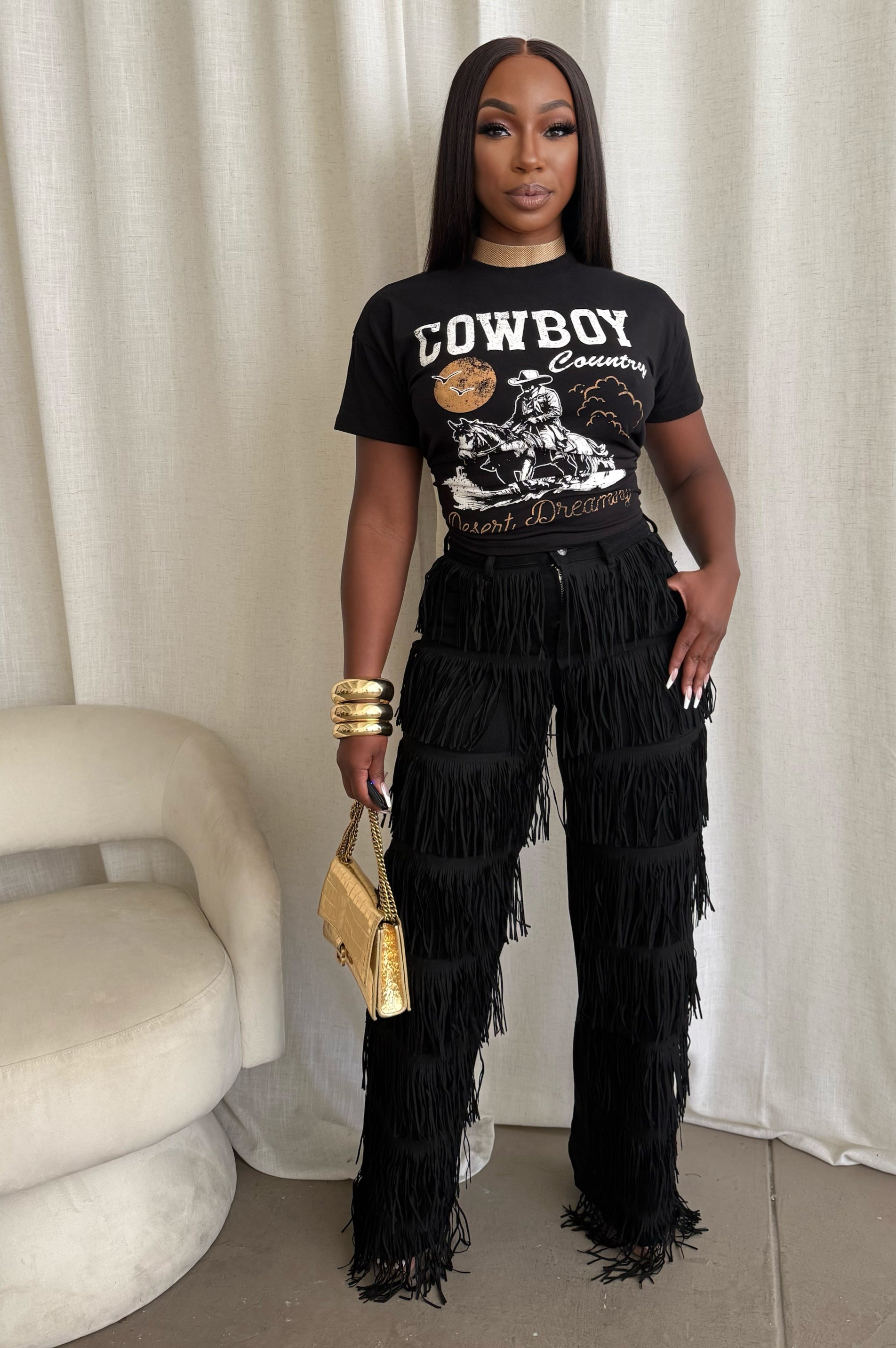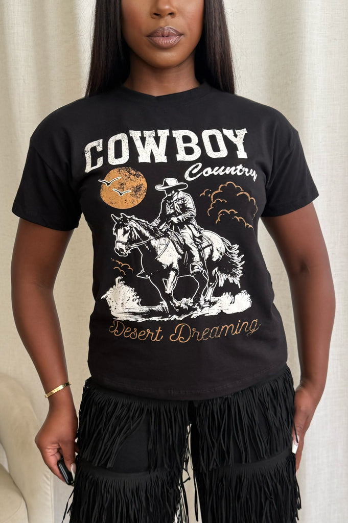 Ride in style with this vintage-inspired tee featuring a bold cowboy “Desert Dreaming” graphic. Soft cotton and a relaxed fit make it perfect for effortless, everyday wear.