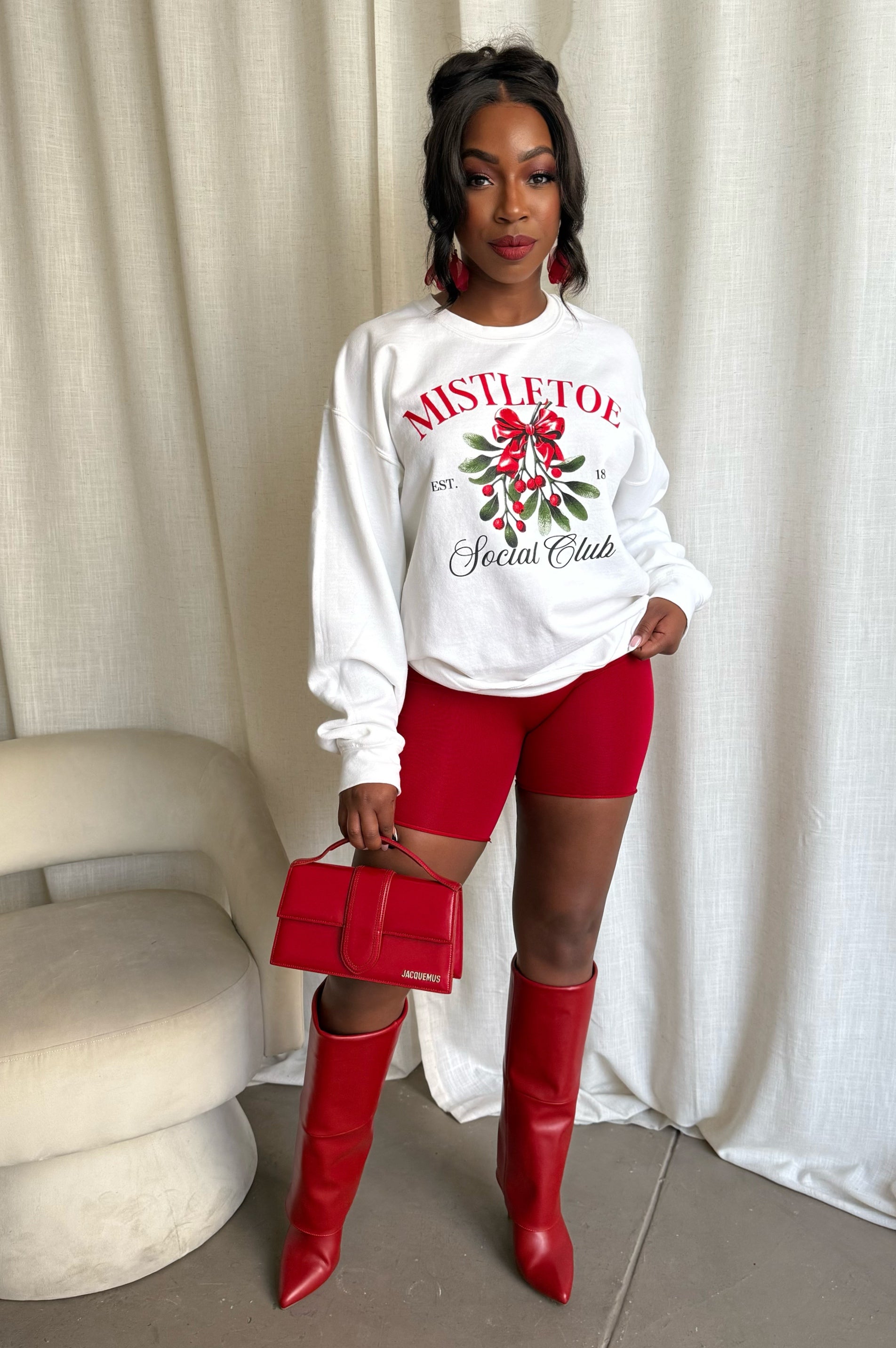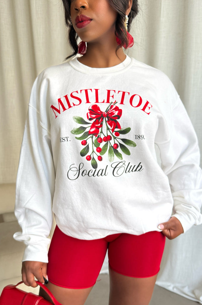 Stay festive and cozy in the Mistletoe Social Club Sweatshirt. Featuring a bold mistletoe graphic and a relaxed, comfy fit, it’s perfect for holiday outings, lounging, or adding a cheerful touch to your winter wardrobe.
